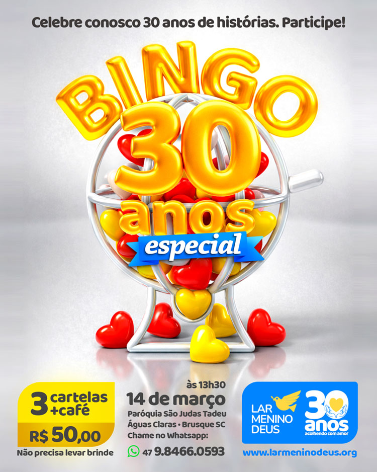 💛💙 BINGO especial do Lar Menino Deus em comemoração aos 30 anos