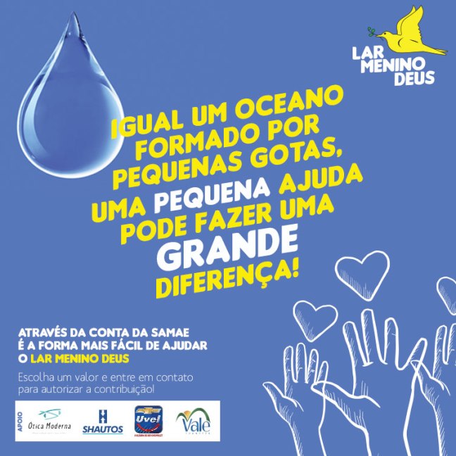 Faça sua doação juntamente com a fatura de água.