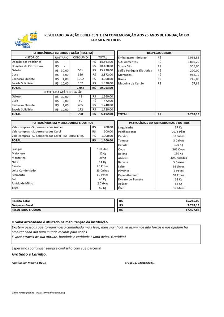 Festa de 22 anos de Fundação – Resultado